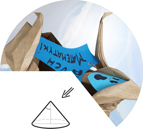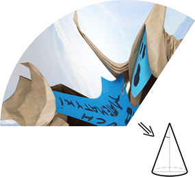 Korzystając z opcji Inside/Outside a Cone otrzymamy zniekształcenie stożkowe. Wpisujemy odpowiednie parametry, następnie drukujemy otrzymany obrazek, wycinamy i sklejamy tak, aby otrzymać powierzchnię boczną stożka.