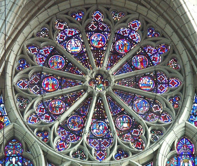 fot. 1. Rozeta z witrażem - katedra w Soissins (Francja)