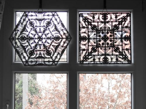 Rozety wykonane z blaszek "Małego konstruktora" świetnie nadają się na zazdrostki w oknach.