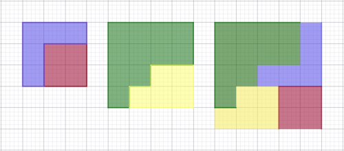 Zad. 3. Dane są dwa kwadraty, jeden o boku 3, a drugi o boku 4. Każdy z nich podziel na dwie części, a następnie ułóż z otrzymanych części kwadrat o boku 5.