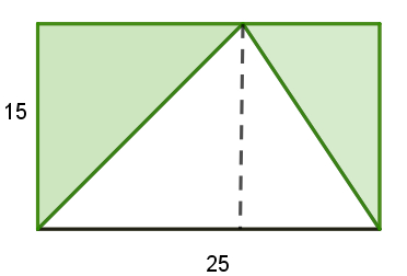 Zad. 3. Na prostokątnej działce o wymiarach 15 m × 25 m postanowiono obsiać trawą część oznaczoną kolorem zielonym. Ile najmniej opakowań nasion trawy, każde o wadze 25 dag, należy zakupić, jeżeli jedno opakowanie wystarcza na obsianie powierzchni 6,5 m²?